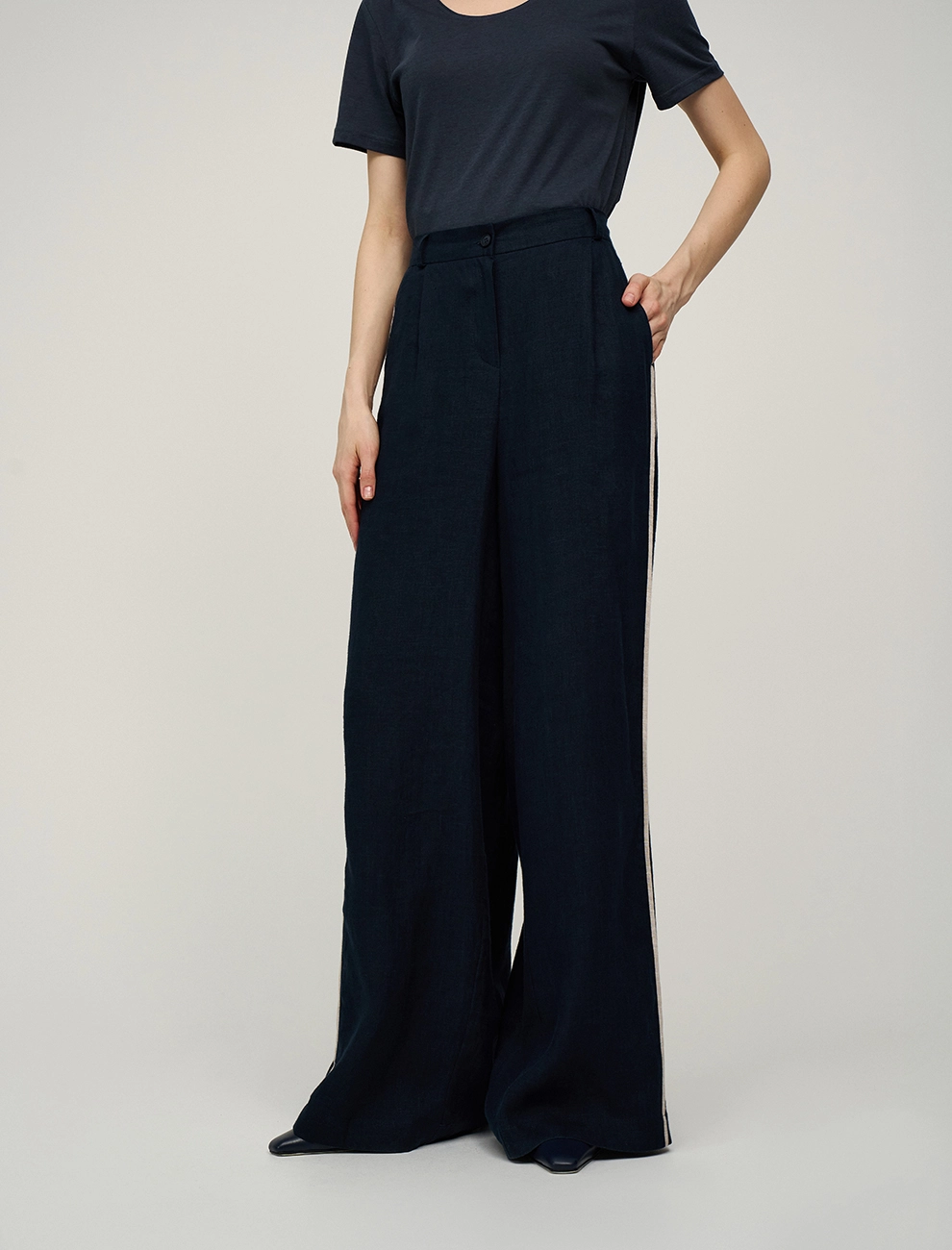 3. Синяя женская блузка О-силуэта хлопок