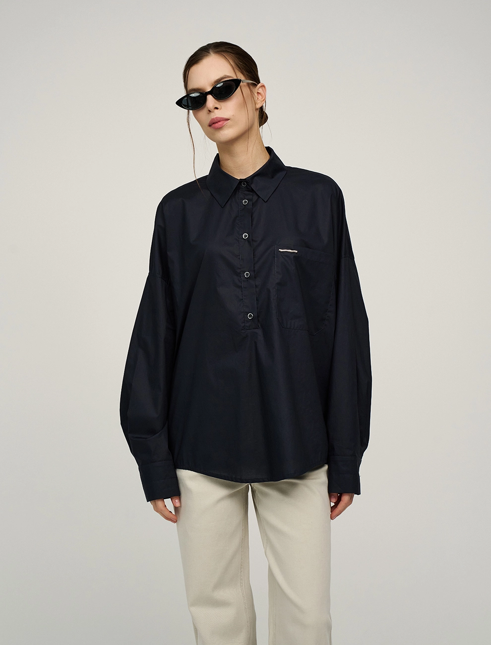 Синие женские брюки «Рукава» хлопок