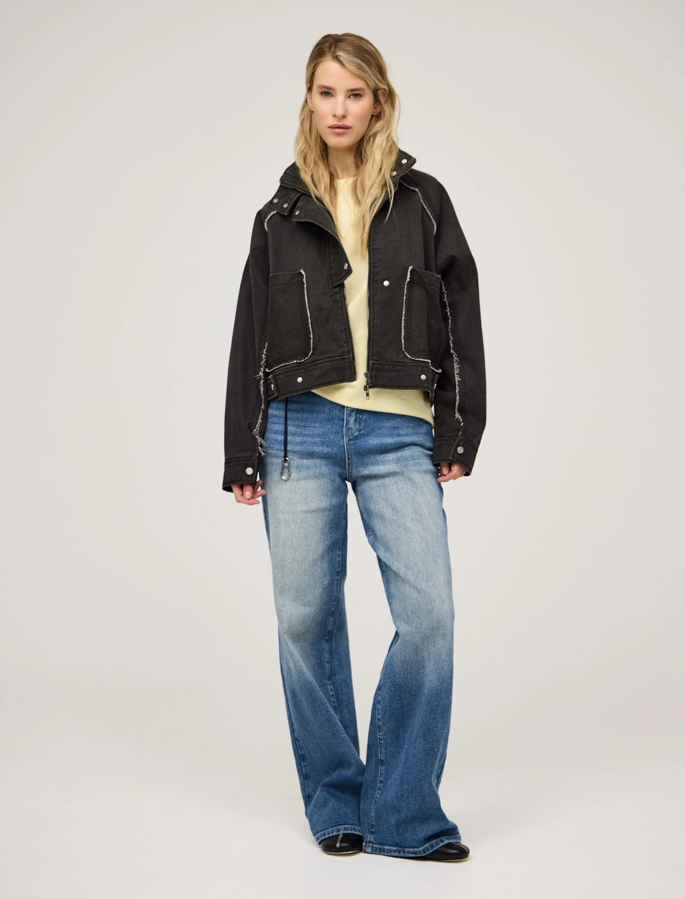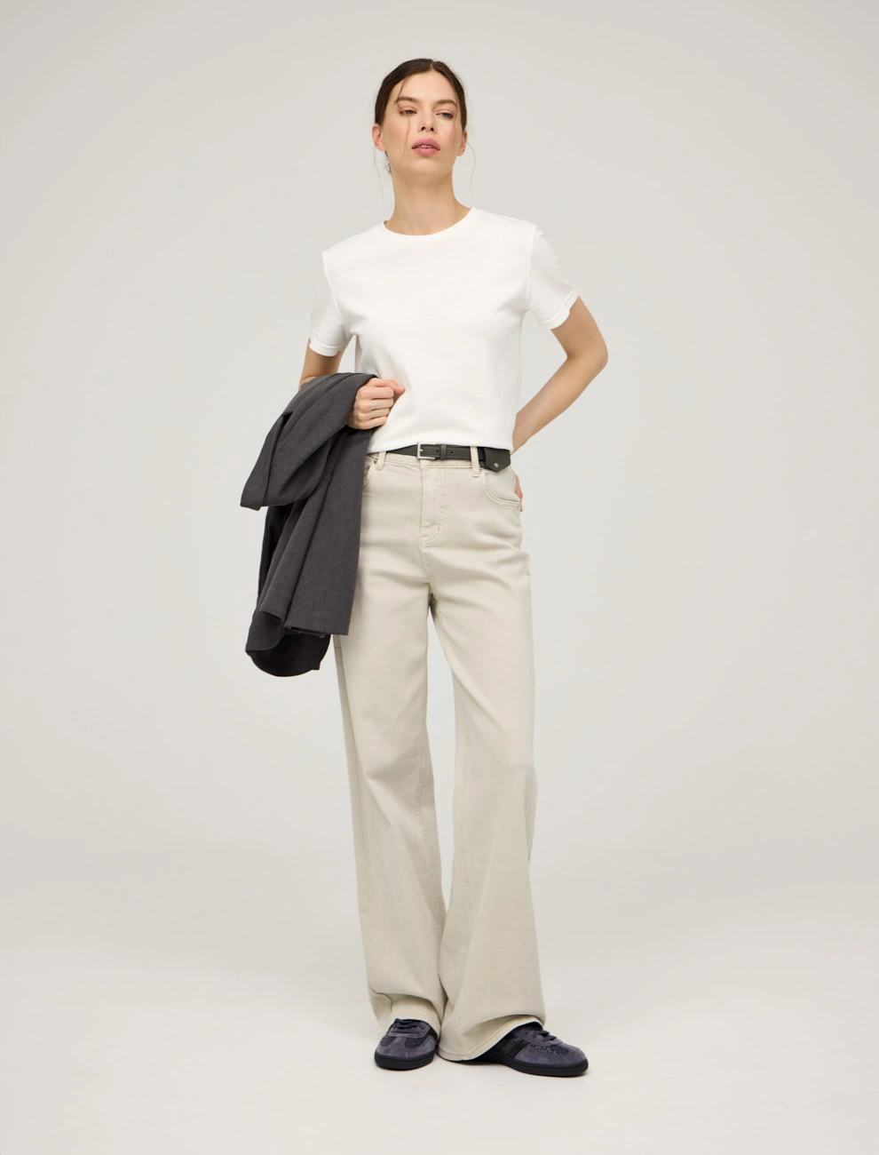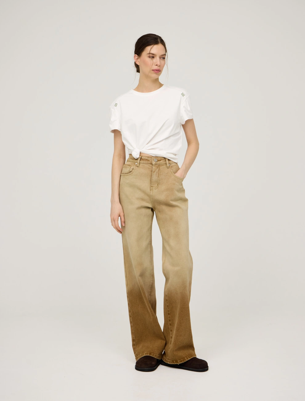 Джинсы прямого силуэта с посадкой на уровне талии. По поясу шлевки. По передней части изделия – классический гульфик и застежка на пуговицу. По переду изделия два отрезных карман. Сзади кокетка, накладные карманы и брендированный патч HASS. Акцентной деталью изделия является контрастная варка. Выполнены из хлопка с добавлением спандекса, что обеспечивает комфорт и долговечность.
